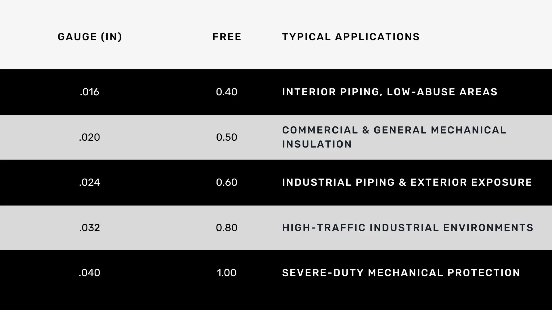 Jacketing is supplied in rolls, sheets, or custom cut lengths with mill finish standard. Specialty coatings are available upon request.